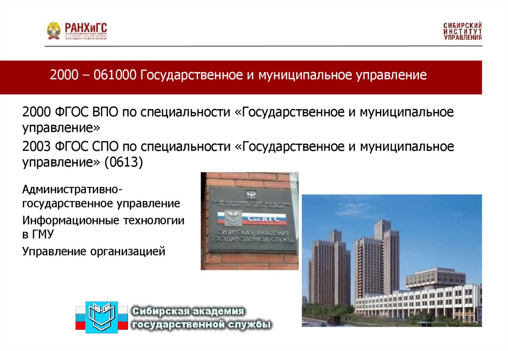 2000 – 061000 Государственное и муниципальное управление2000 ФГОС ВПО по специальности «Государственное и муниципальное