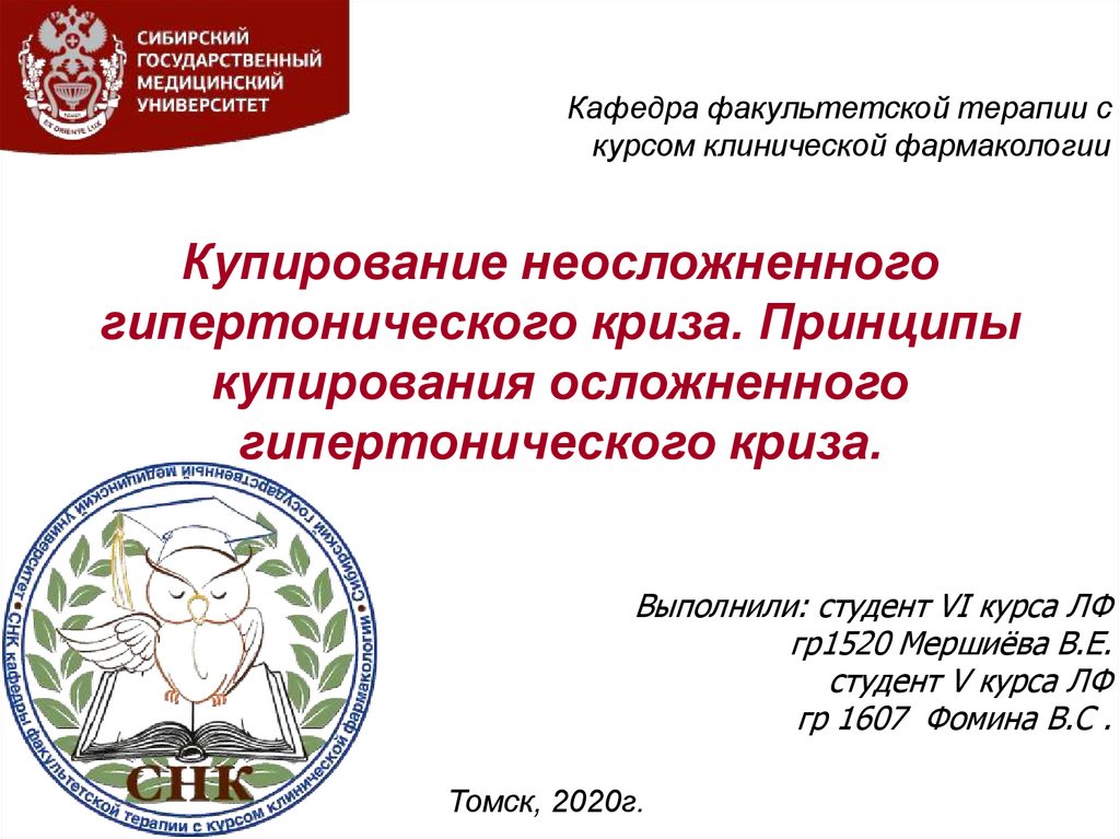 Купирование неосложненного гипертонического криза. Принципы купирования осложненного гипертонического криза