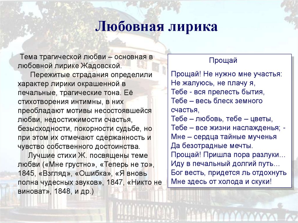 любовной лирике Жадовской.