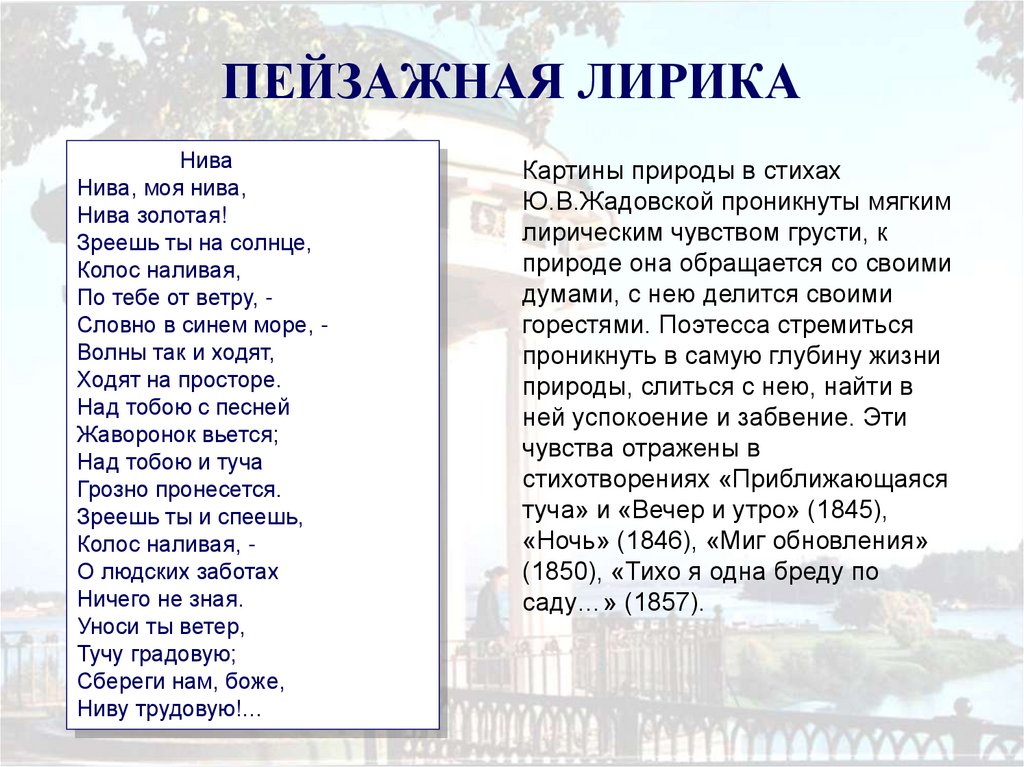 Ю.В.Жадовской проникнуты мягким