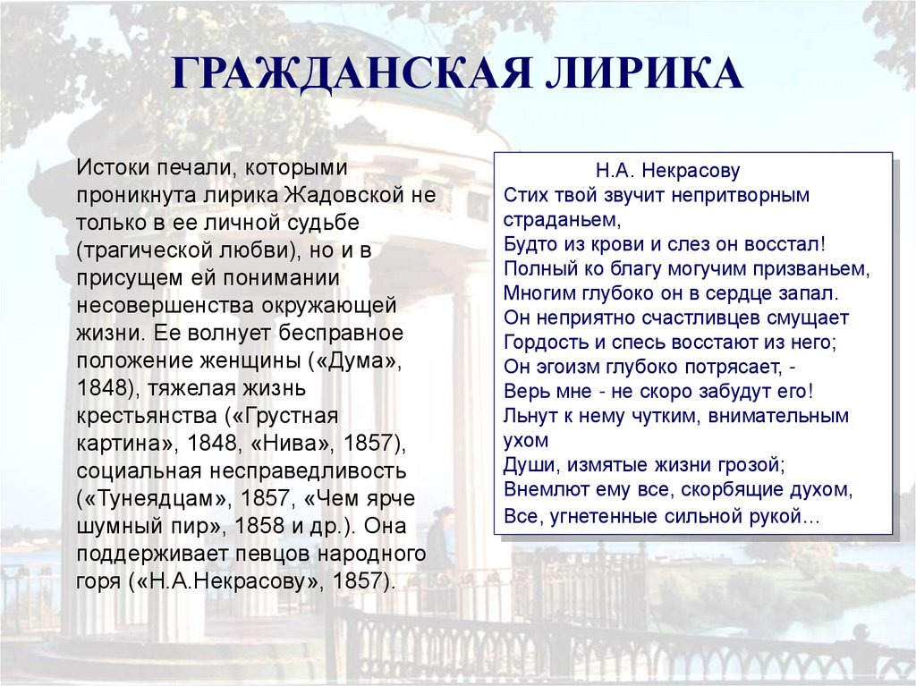 ГРАЖДАНСКАЯ ЛИРИКАИстоки печали, которыми