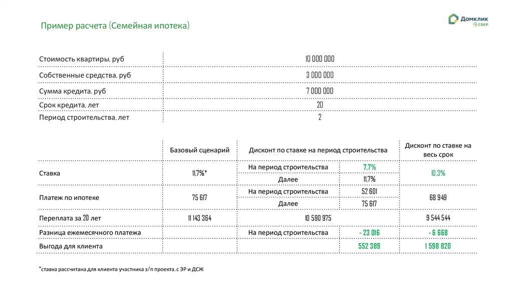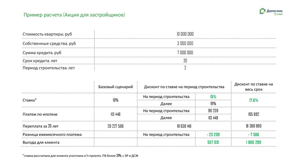 *ставка рассчитана для клиента участника з/п проекта, ПВ более 20%, с ЭР и ДСЖ