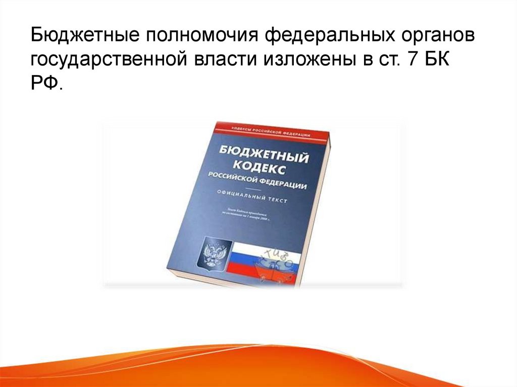 Бюджетные полномочия федеральных органовгосударственной власти изложены в ст. 7 БК