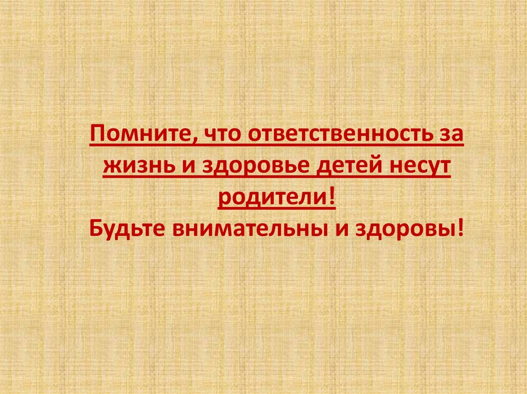 Помните, что ответственность зажизнь и здоровье детей несут