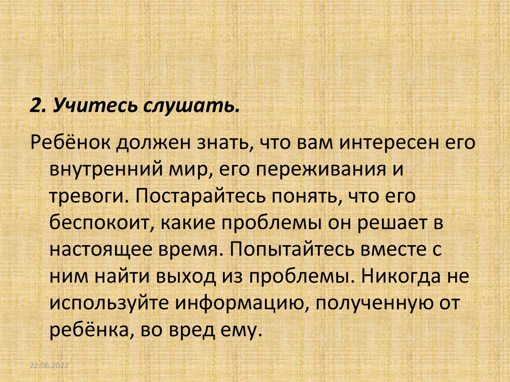 2. Учитесь слушать.Ребёнок должен знать, что вам интересен его