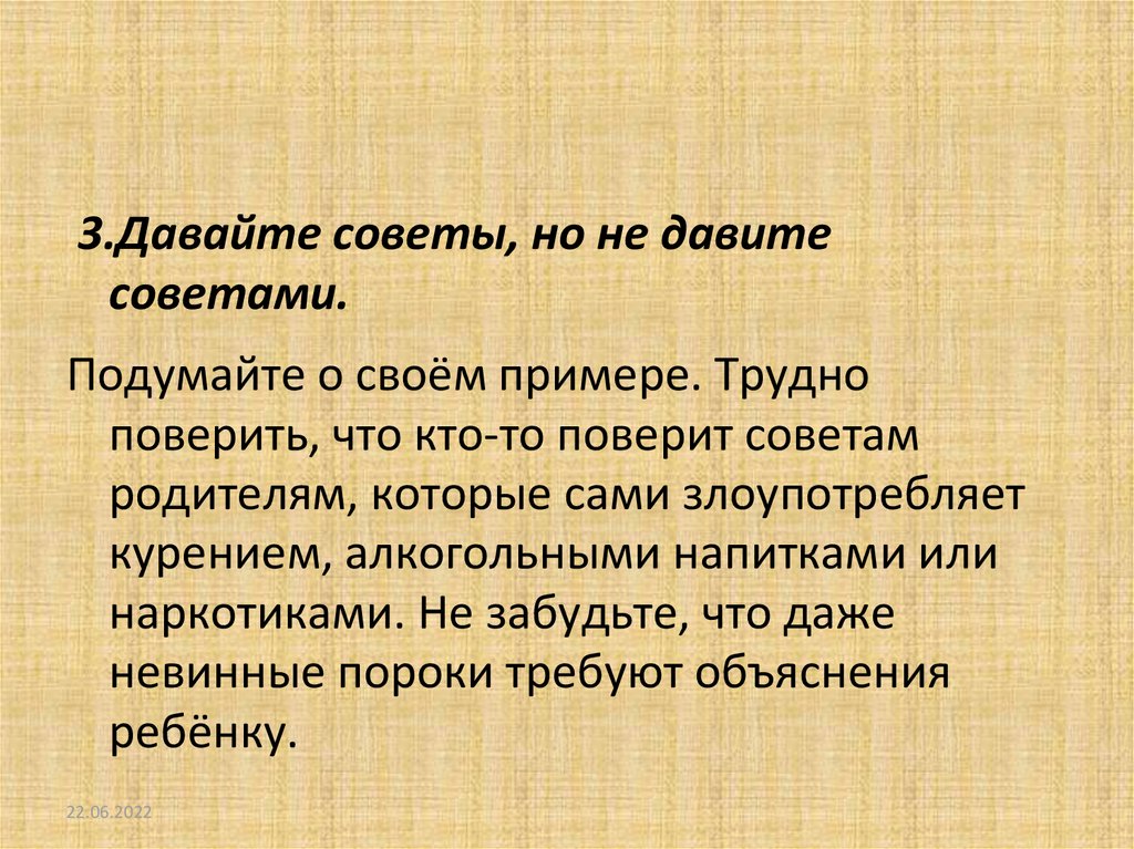 3.Давайте советы, но не давитесоветами.