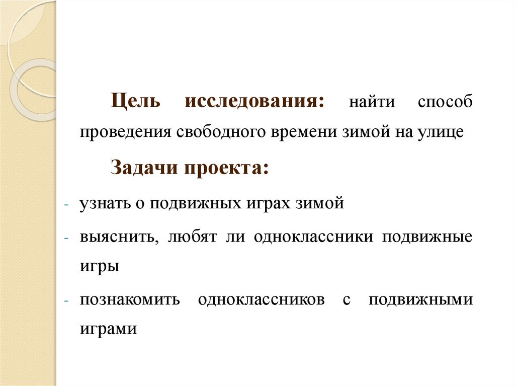 1. Тема исследовательского проекта «Подвижные игры зимой»