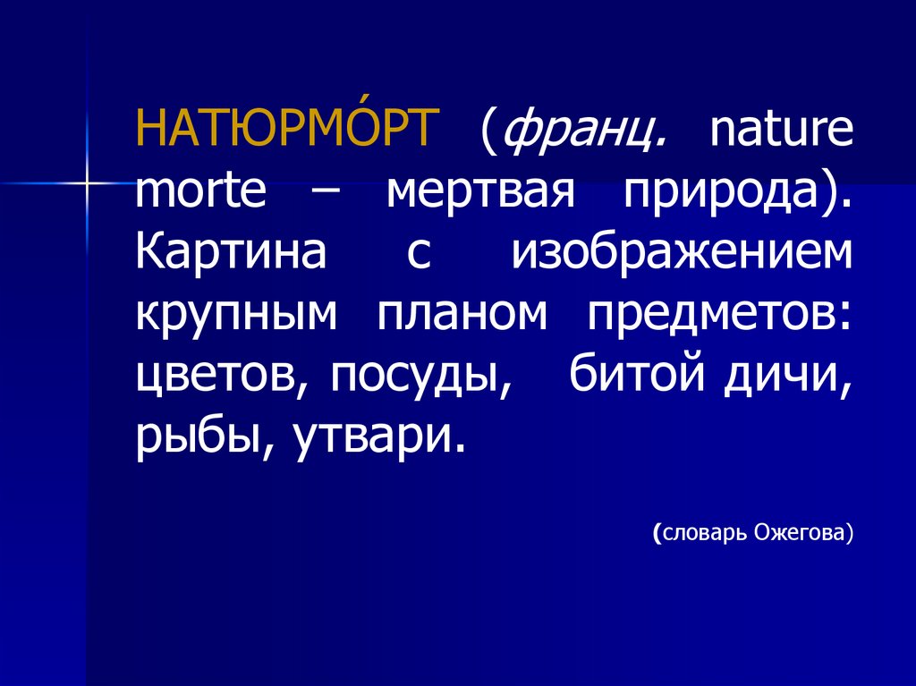 НАТЮРМО́РТ (франц. naturemorte – мертвая природа).