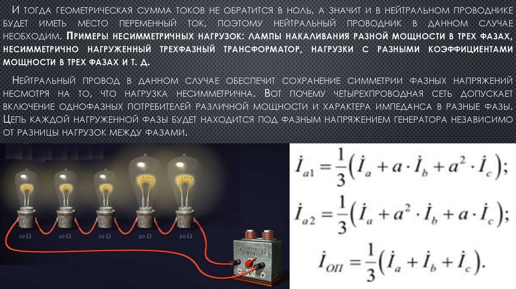 НЕСИММЕТРИЧНЫХ НАГРУЗОК: ЛАМПЫ НАКАЛИВАНИЯ РАЗНОЙ МОЩНОСТИ В ТРЕХ ФАЗАХ,