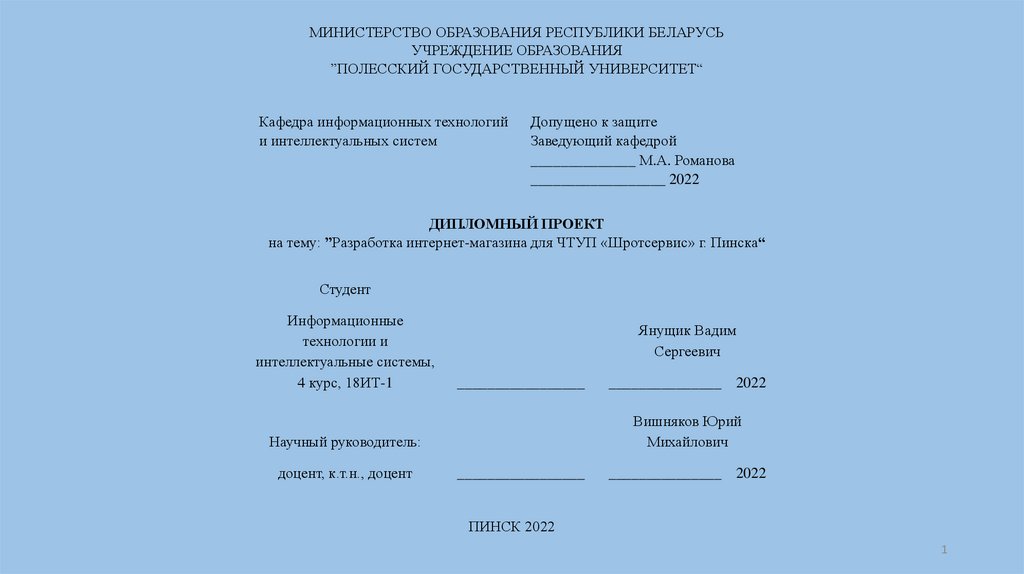 на тему: ”Разработка интернет-магазина для ЧТУП «Шротсервис» г. Пинска“