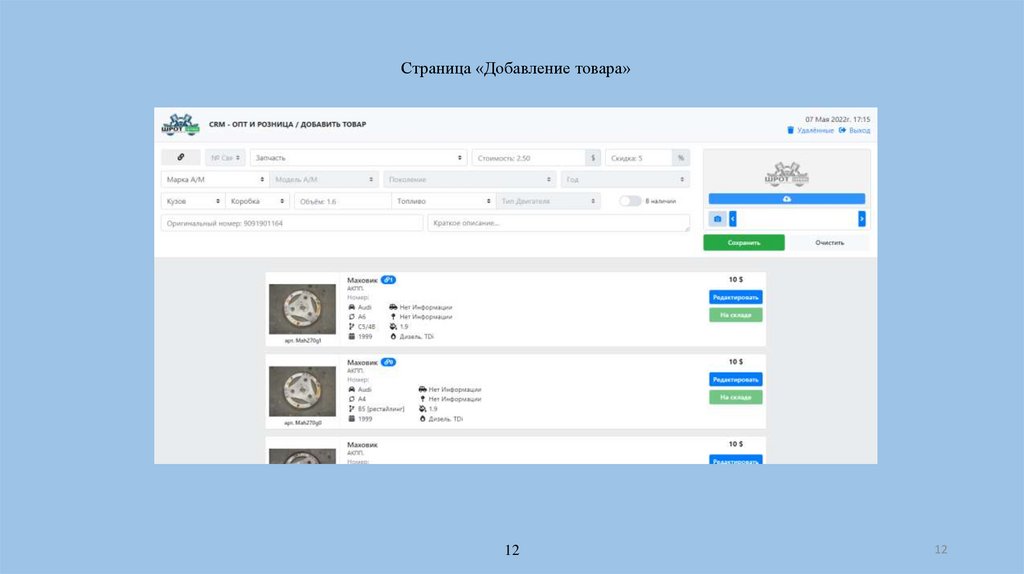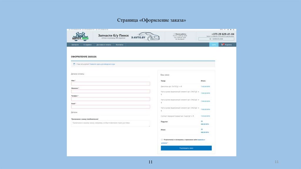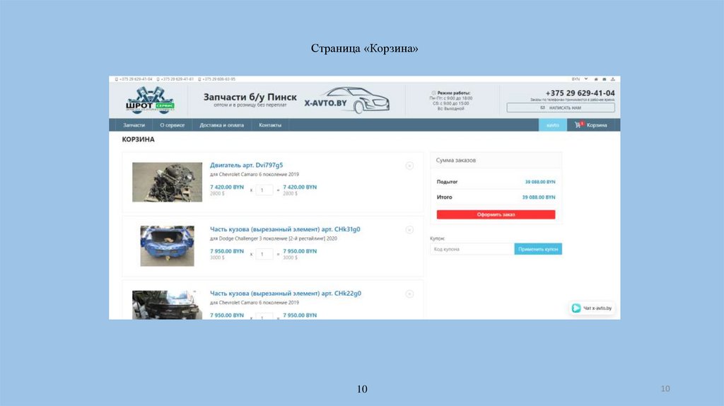продажи б/у автозапчастей с помощью создания интернет-магазина.