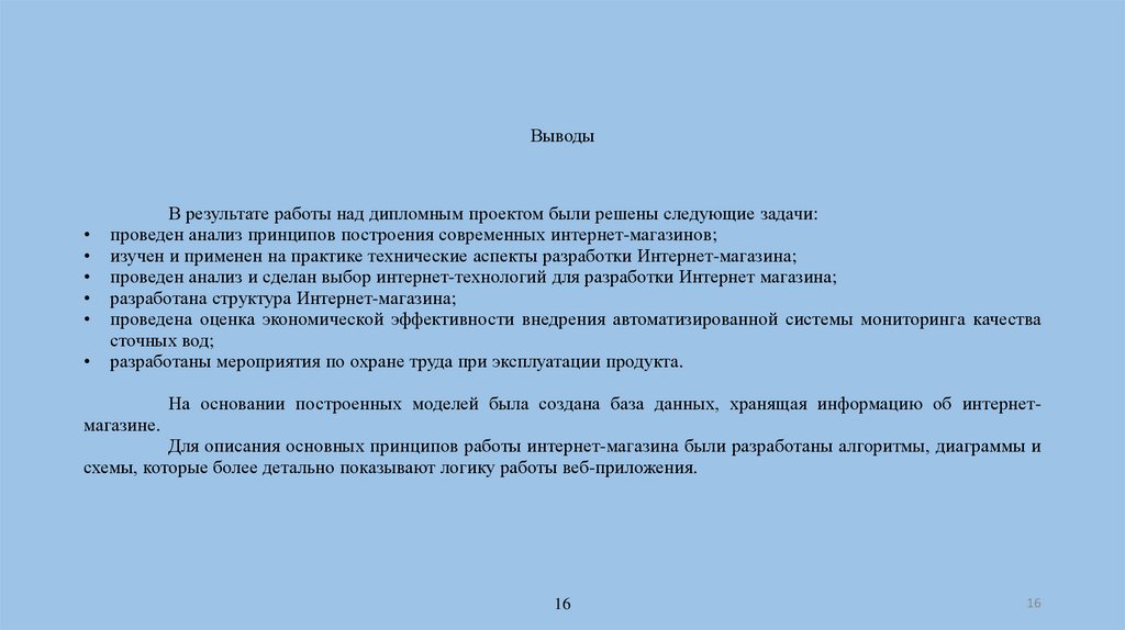ВыводыВ результате работы над дипломным проектом были решены следующие задачи: