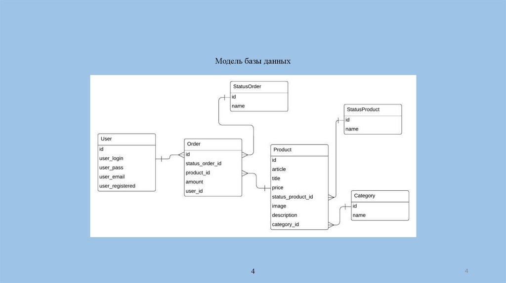 На основании построенных моделей была создана база данных, хранящая информацию об интернет-