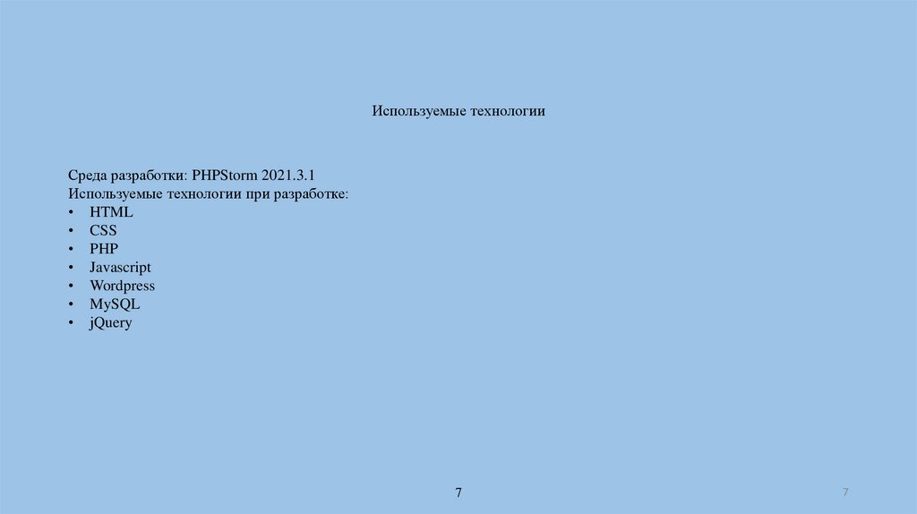 Используемые технологииСреда разработки: PHPStorm 2021.3.1