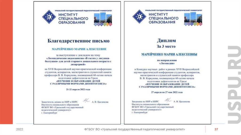 2022ФГБОУ ВО «Уральский государственный педагогический университет»