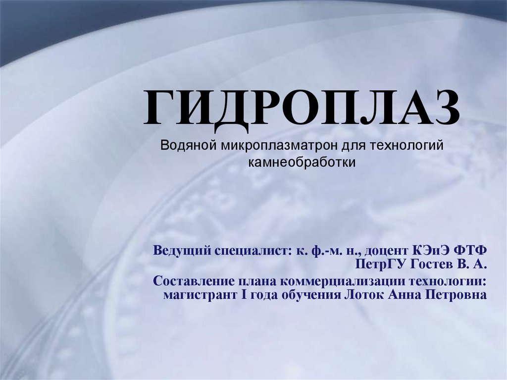 1. ГИДРОПЛАЗ Водяной микроплазматрон для технологий камнеобработки