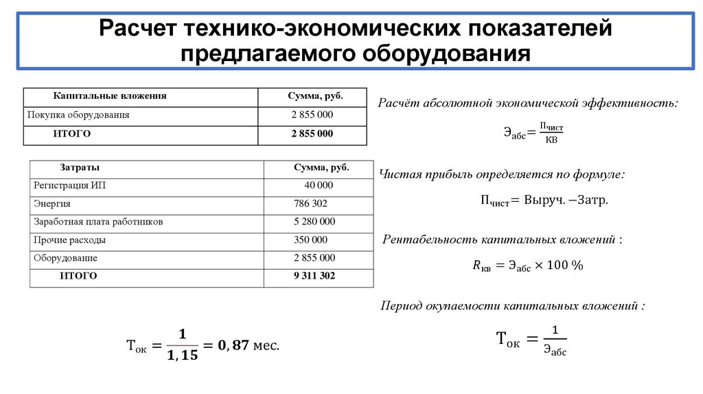 Расчет технико-экономических показателейпредлагаемого оборудования