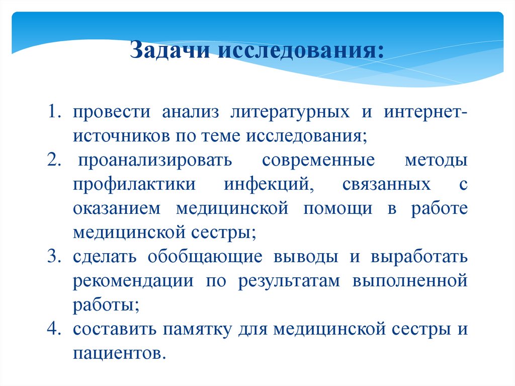 Задачи исследования:1. провести анализ литературных и интернетисточников по теме исследования;