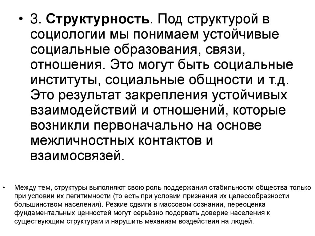 • 3. Структурность. Под структурой всоциологии мы понимаем устойчивые