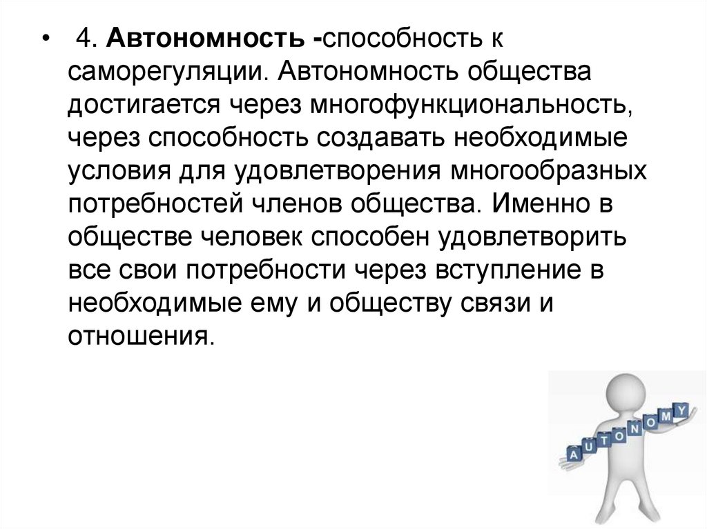 • 4. Автономность -способность ксаморегуляции. Автономность общества