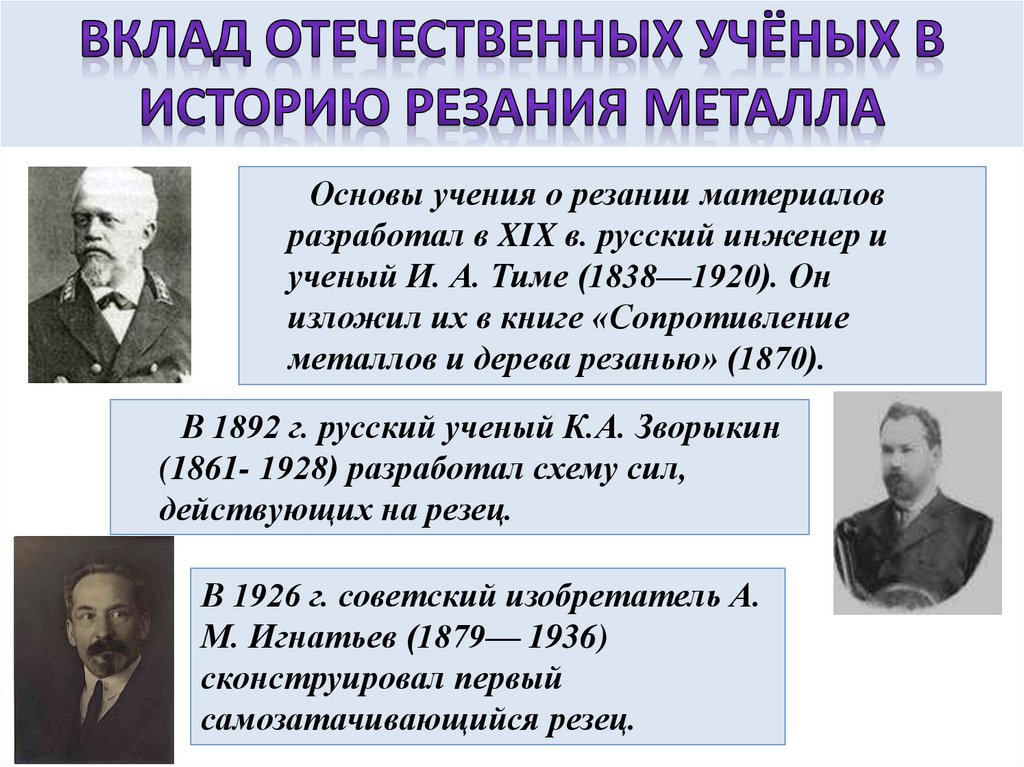 Основы учения о резании материаловразработал в XIX в. русский инженер и