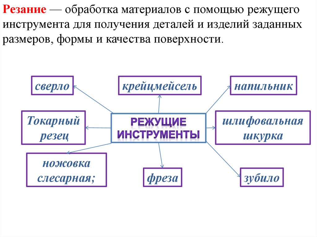 Резание — обработка материалов с помощью режущегоинструмента для получения деталей и изделий заданных
