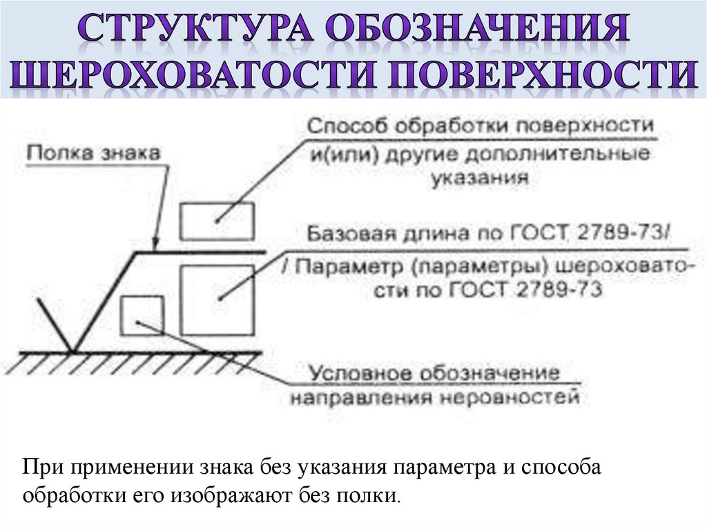 При применении знака без указания параметра и способаобработки его изображают без полки.