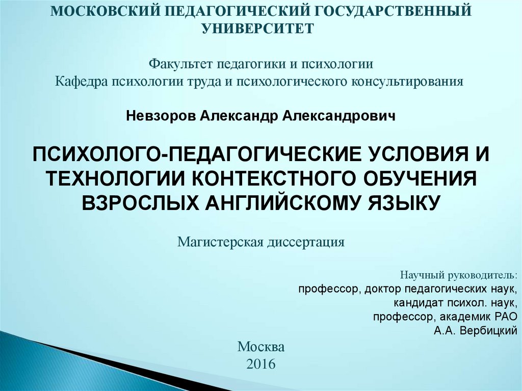 МОСКОВСКИЙ ПЕДАГОГИЧЕСКИЙ ГОСУДАРСТВЕННЫЙУНИВЕРСИТЕТ