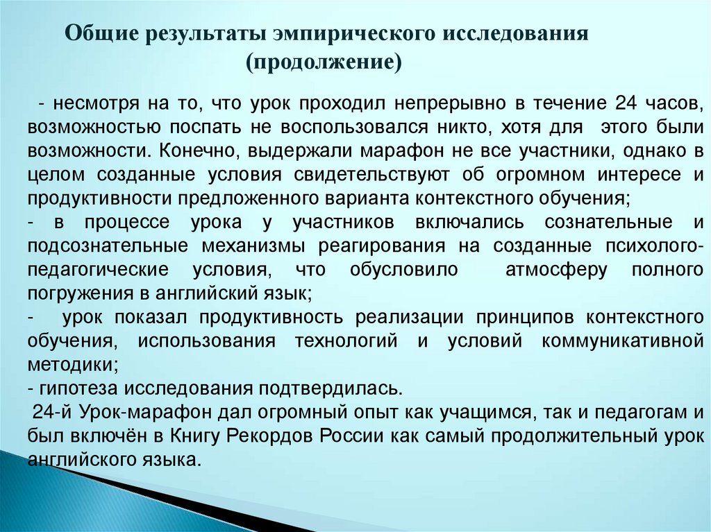 - несмотря на то, что урок проходил непрерывно в течение 24 часов,