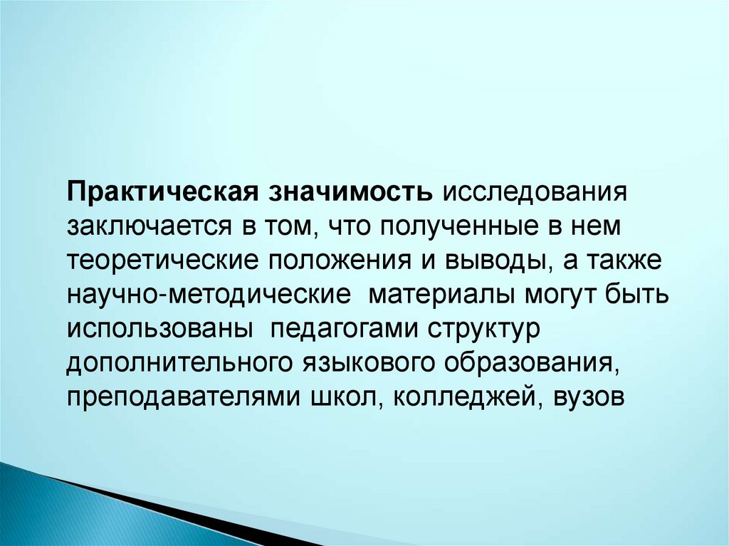 Практическая значимость исследованиязаключается в том, что полученные в нем