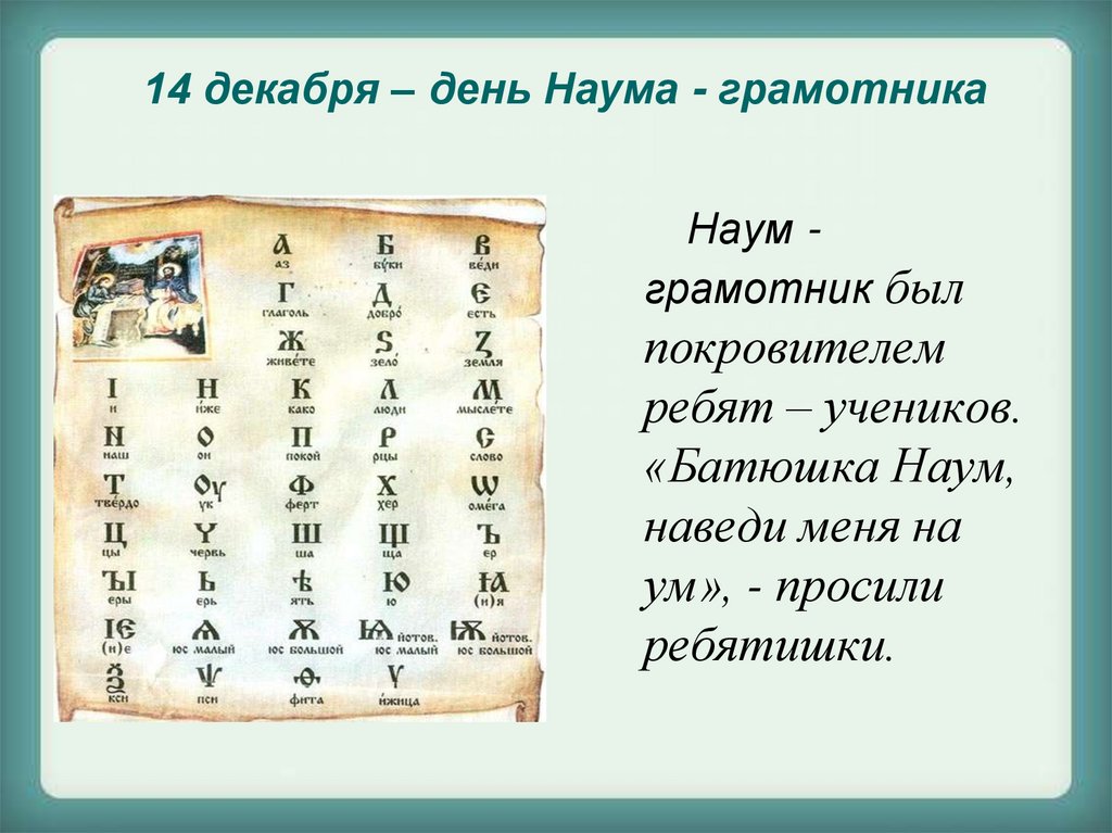 14 декабря – день Наума - грамотникаНаум грамотник был