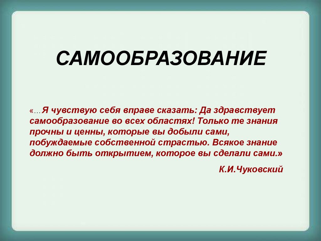 САМООБРАЗОВАНИЕ«…Я чувствую себя вправе сказать: Да здравствует