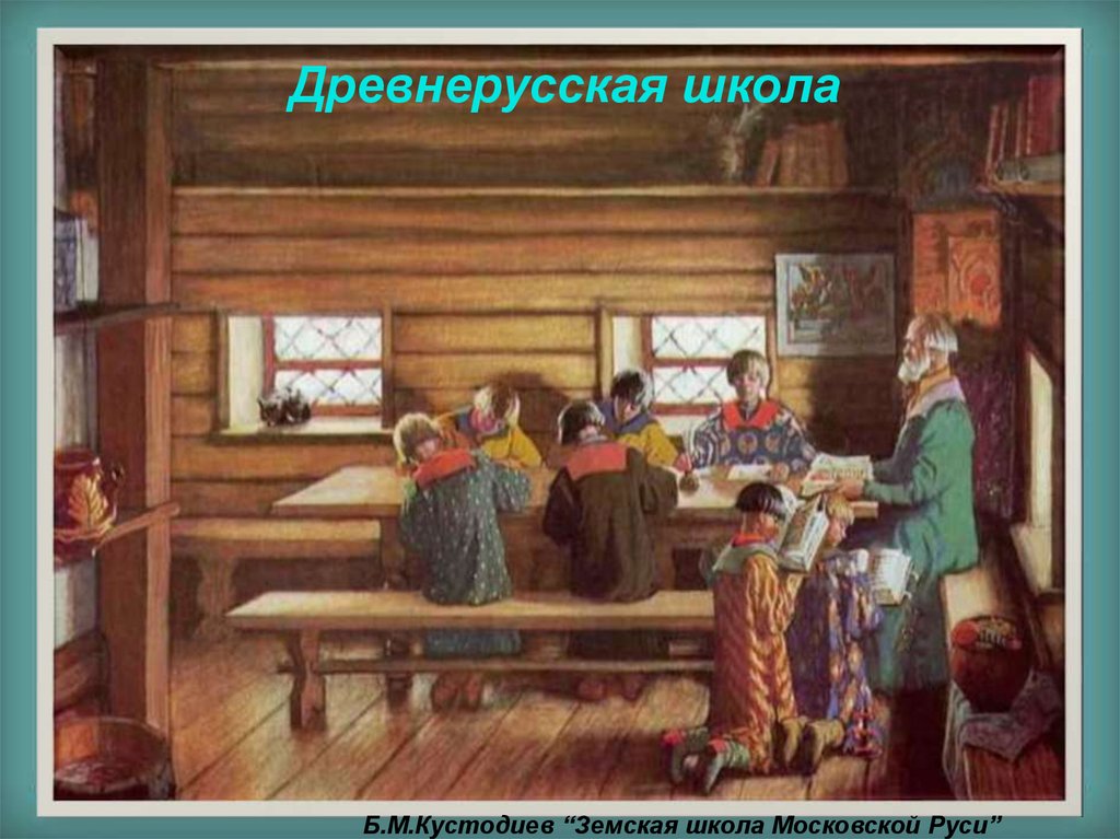 Древнерусская школаБ.М.Кустодиев “Земская школа Московской Руси”