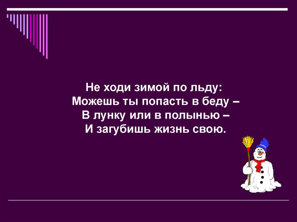 Не ходи зимой по льду:Можешь ты попасть в беду –