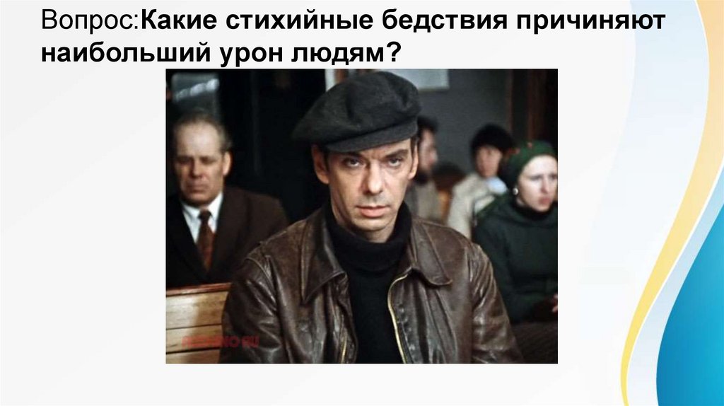 Вопрос:Какие стихийные бедствия причиняютнаибольший урон людям?