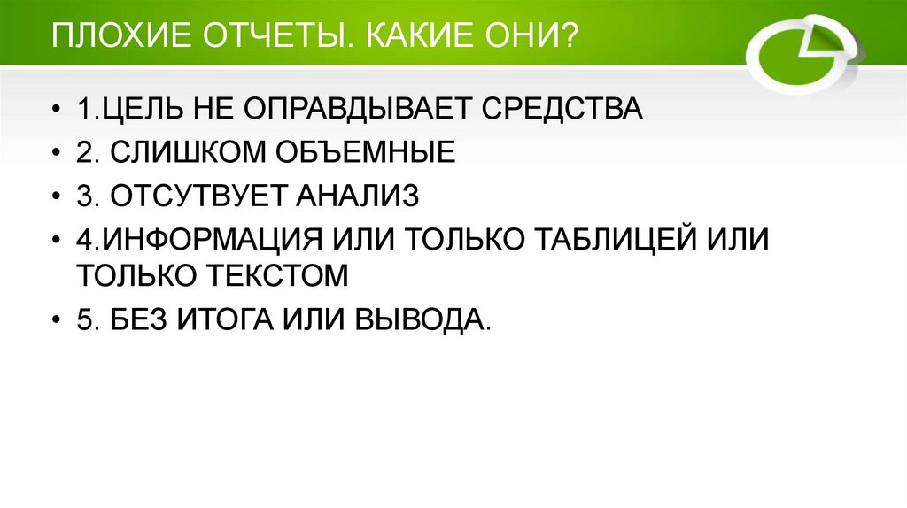 ПЛОХИЕ ОТЧЕТЫ. КАКИЕ ОНИ?1.ЦЕЛЬ НЕ ОПРАВДЫВАЕТ СРЕДСТВА