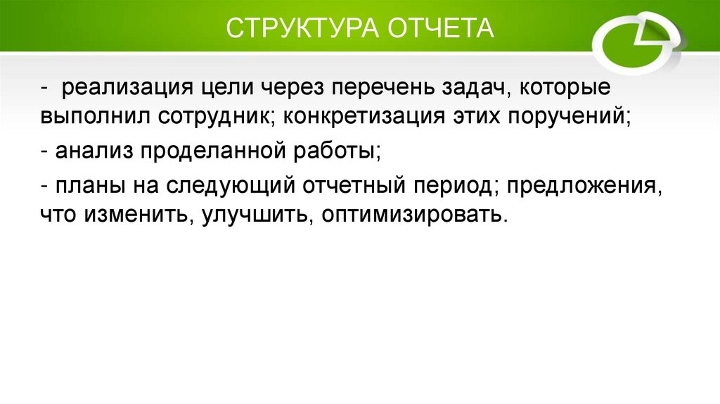 СТРУКТУРА ОТЧЕТА- реализация цели через перечень задач, которые