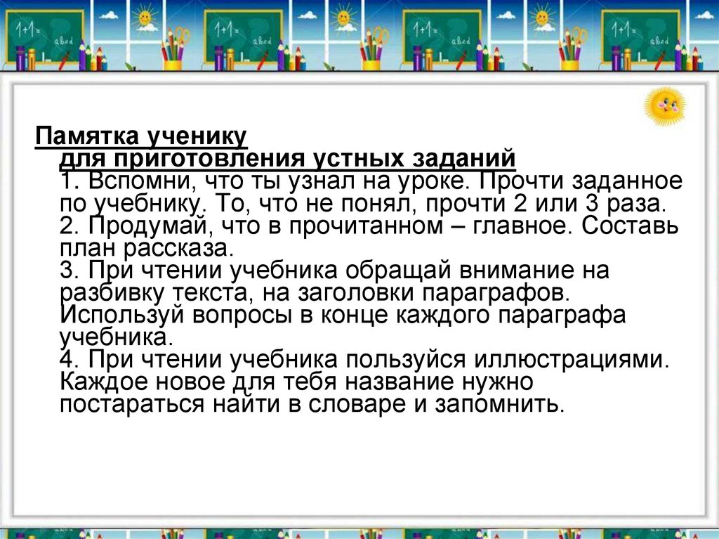 1. Вспомни, что ты узнал на уроке. Прочти заданное