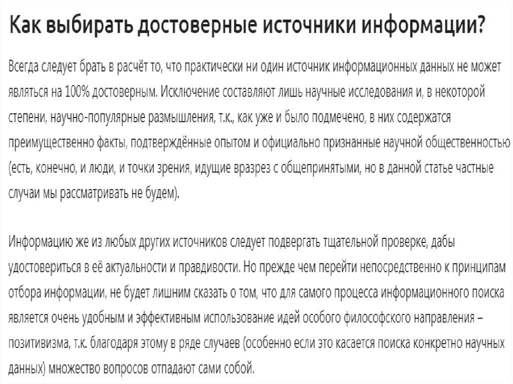 Поиск недостающей информации, её обработка и анализ. Выбор источников