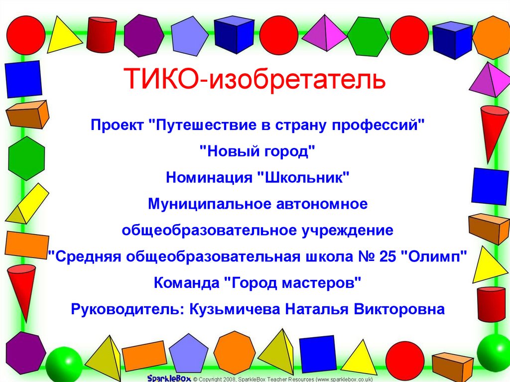 ТИКО-изобретательПроект "Путешествие в страну профессий"