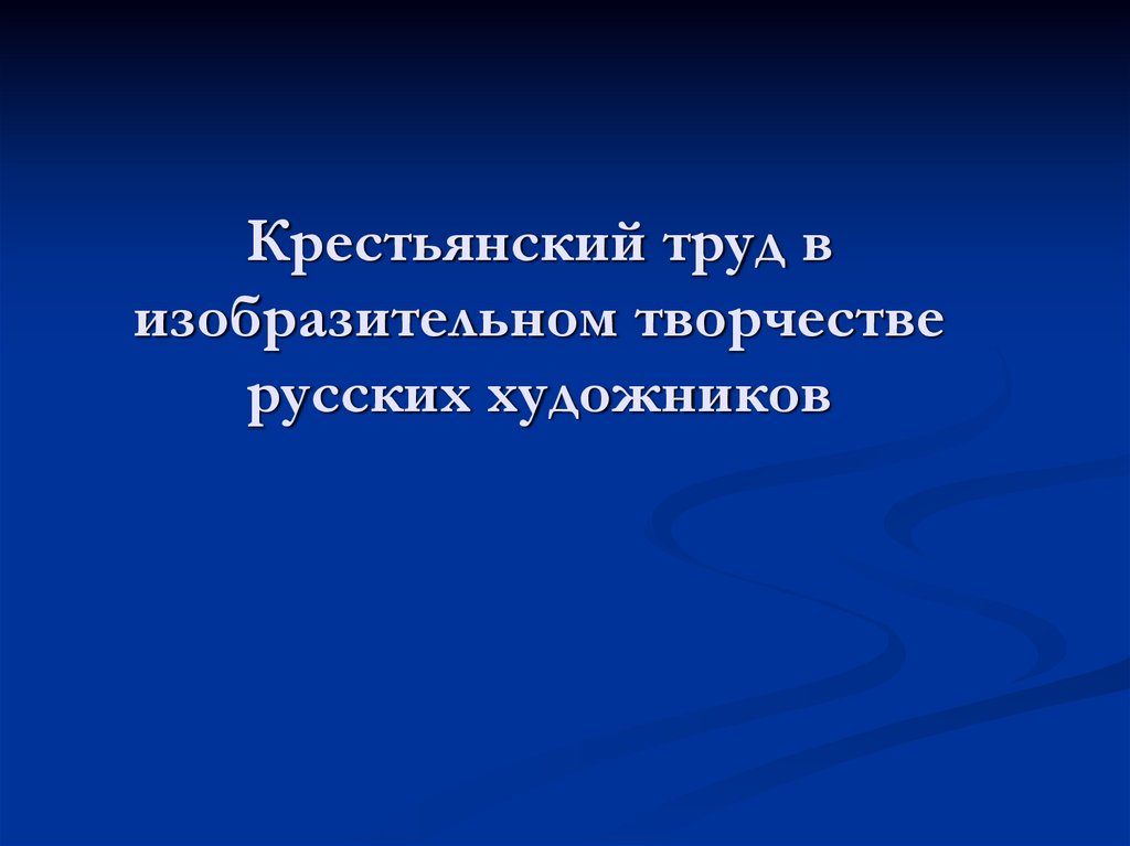 1. Крестьянский труд в изобразительном творчестве русских художников