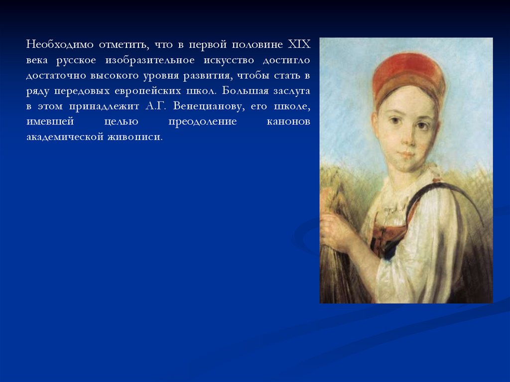Необходимо отметить, что в первой половине XIXвека русское изобразительное искусство достигло