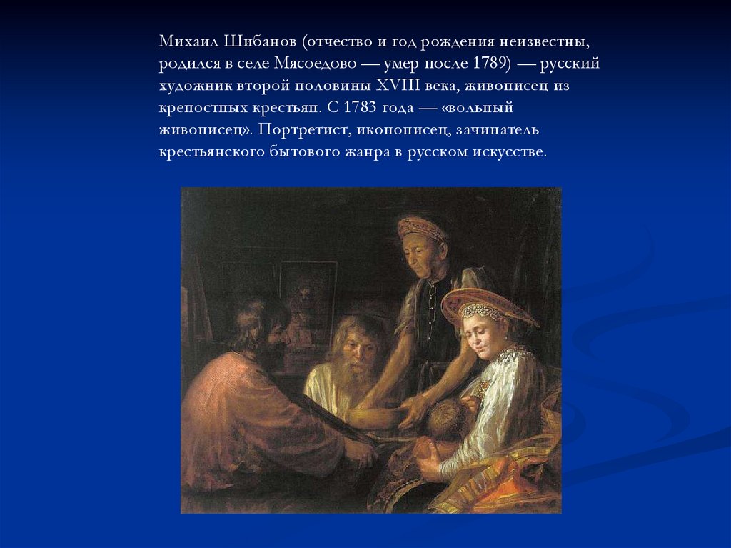 Михаил Шибанов (отчество и год рождения неизвестны,родился в селе Мясоедово — умер после 1789) — русский