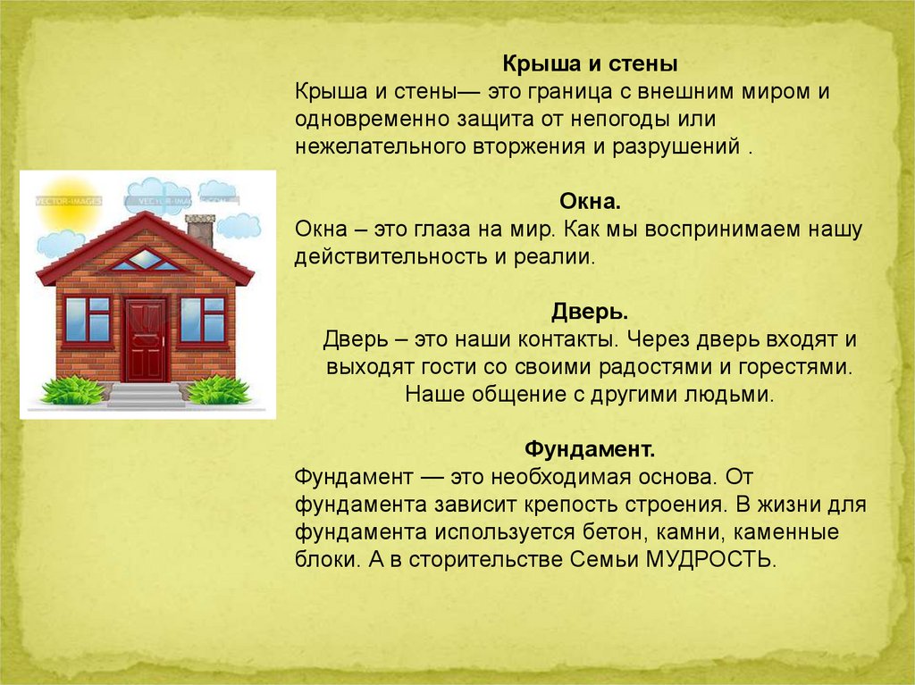 не возведены стены – нет смысла ставить крышу. Мы помним, что образ дома
