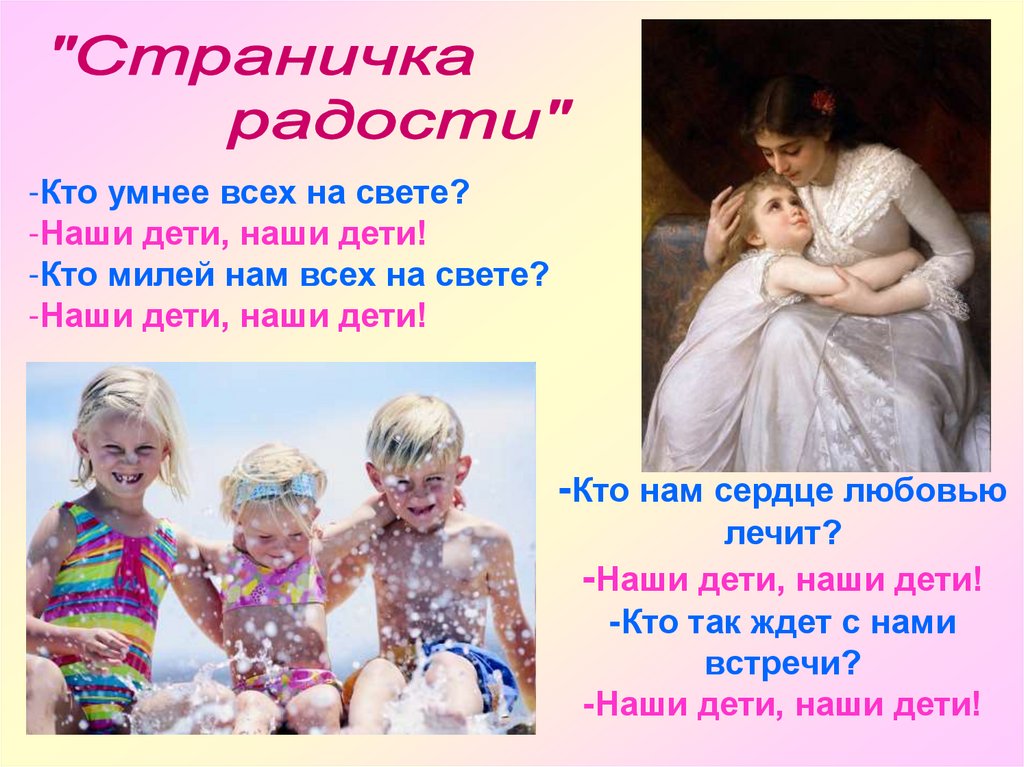 -Кто умнее всех на свете?-Наши дети, наши дети!