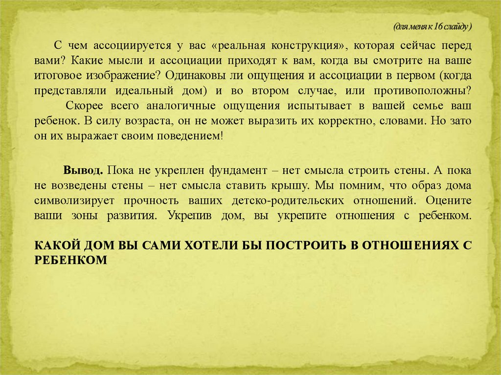 КАКОЙ ДОМ ВЫ САМИ ХОТЕЛИ БЫ ПОСТРОИТЬ В ОТНОШЕНИЯХ С