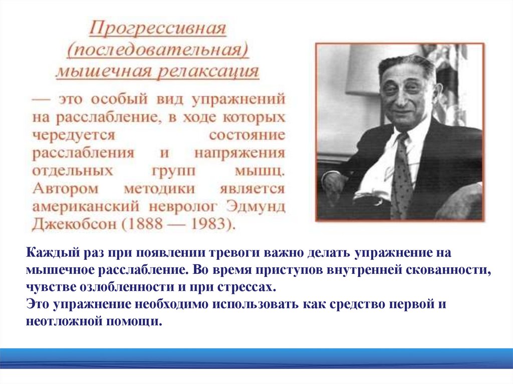 Каждый раз при появлении тревоги важно делать упражнение намышечное расслабление. Во время приступов внутренней скованности,