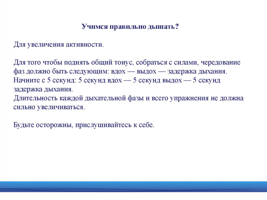 Учимся правильно дышать?Для увеличения активности.