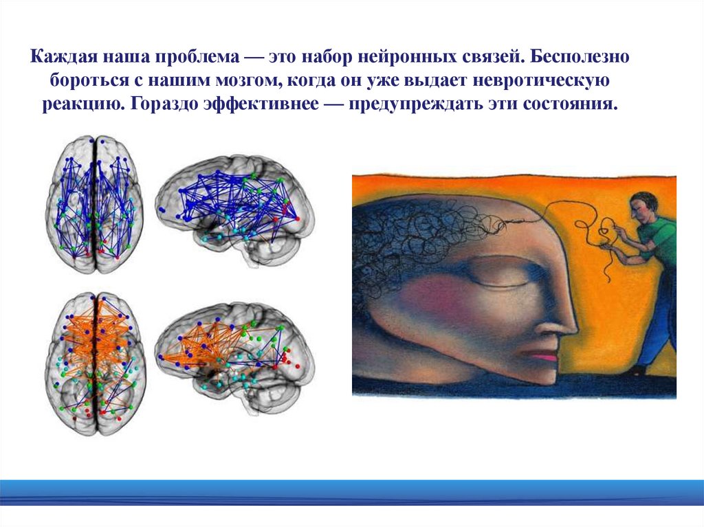 Каждая наша проблема — это набор нейронных связей. Бесполезнобороться с нашим мозгом, когда он уже выдает невротическую