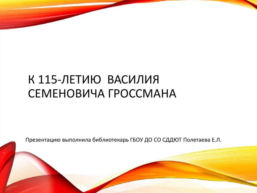 Презентацию выполнила библиотекарь ГБОУ ДО СО СДДЮТ Полетаева Е.Л.2. Гроссман Василий Семенович (1905-1964).